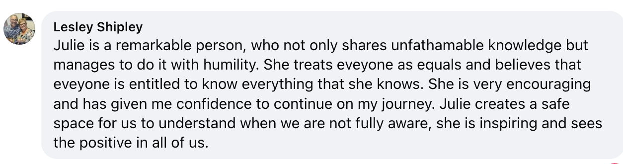“I’m a complete AI beginner, but Julie made it non-threatening, fun, and practical. I now have an AI Supersheet that helps me create customised marketing that sounds like me.”